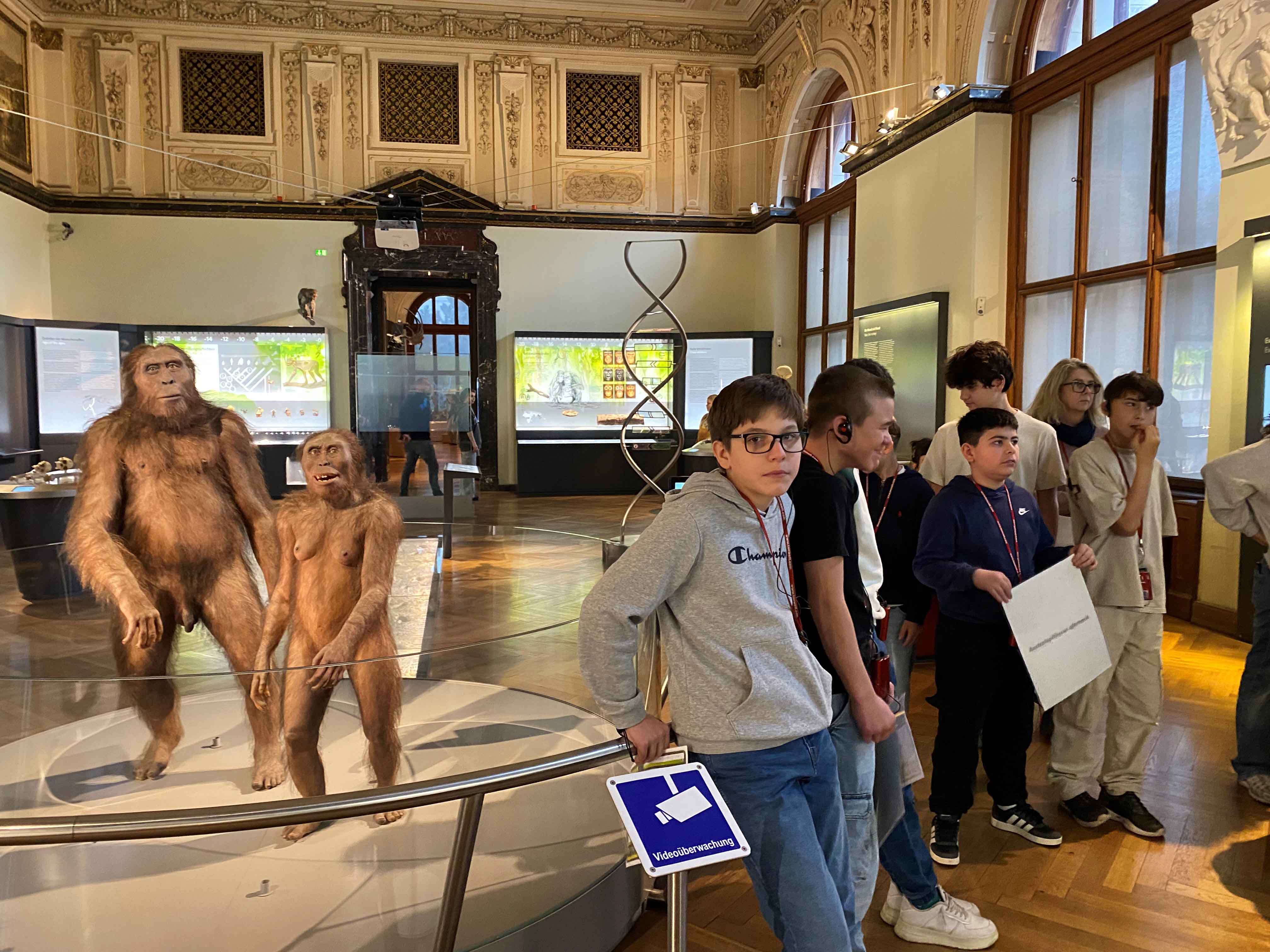 Am 18. Dezember unternahm die 3b einen Lehrausgang ins Naturhistorische Museum Wien. Das Thema des Besuchs war „Die Entwicklung des Menschen“. Für die Schülerinnen und Schüler stand eine spannende Aktionsführung am Programm, bei der sie aktiv in das Thema eingebunden wurden. Während der Führung erfuhren die Kinder anschaulich, wie sich der Mensch im Laufe der Evolution entwickelt hat und erhielten interessante Einblicke in die Lebensweise unserer Vorfahren. Durch interaktive Aufgaben und Fragen wurden die Schülerinnen und Schüler motiviert, ihr Wissen einzubringen und Neues zu entdecken.