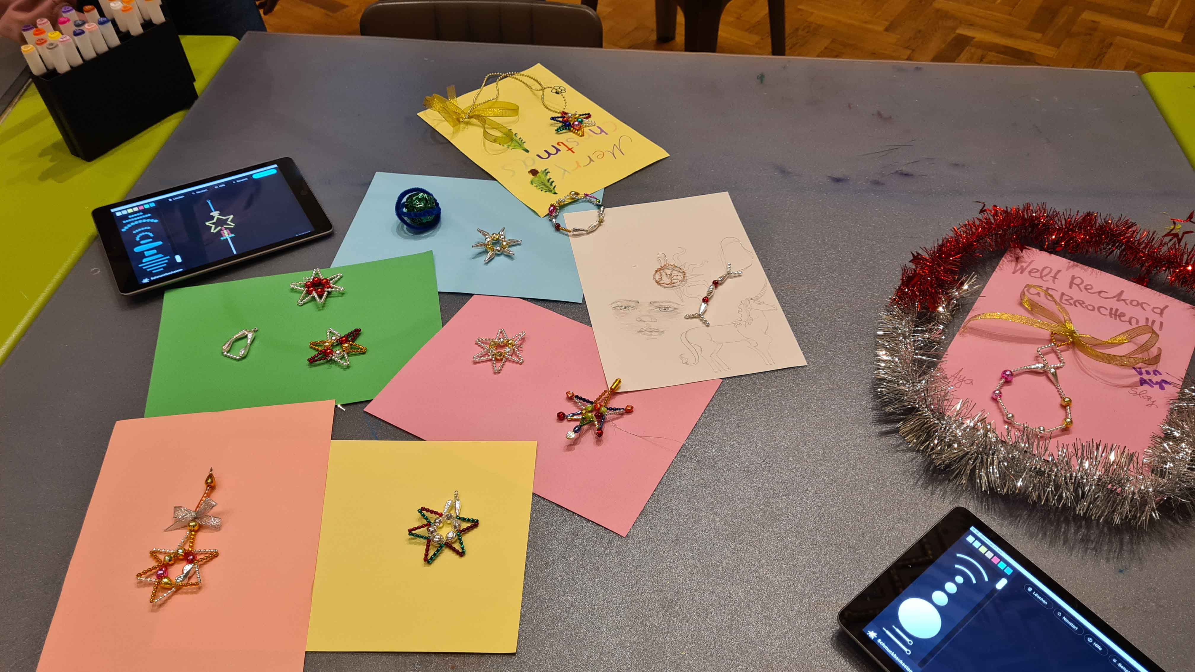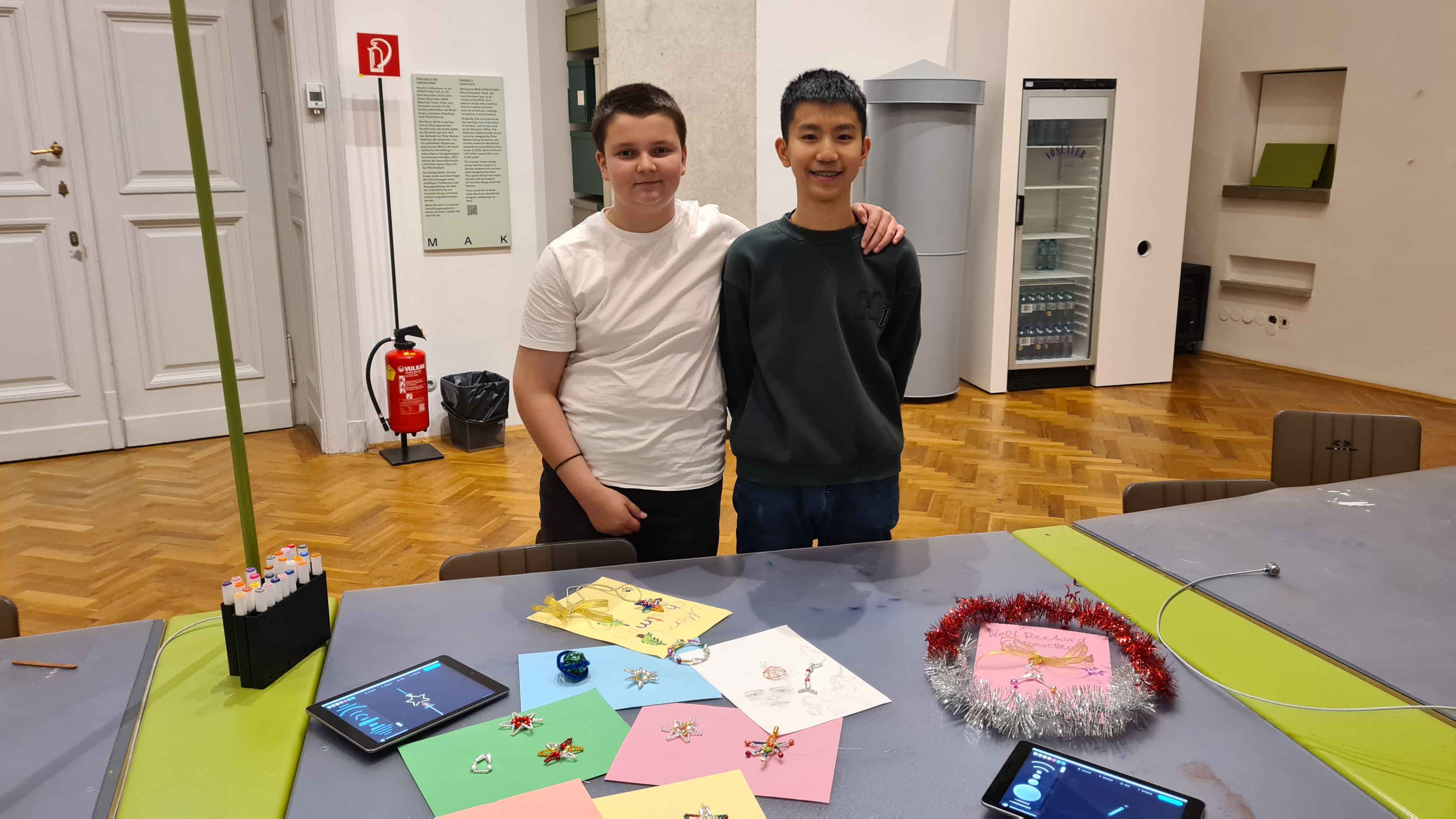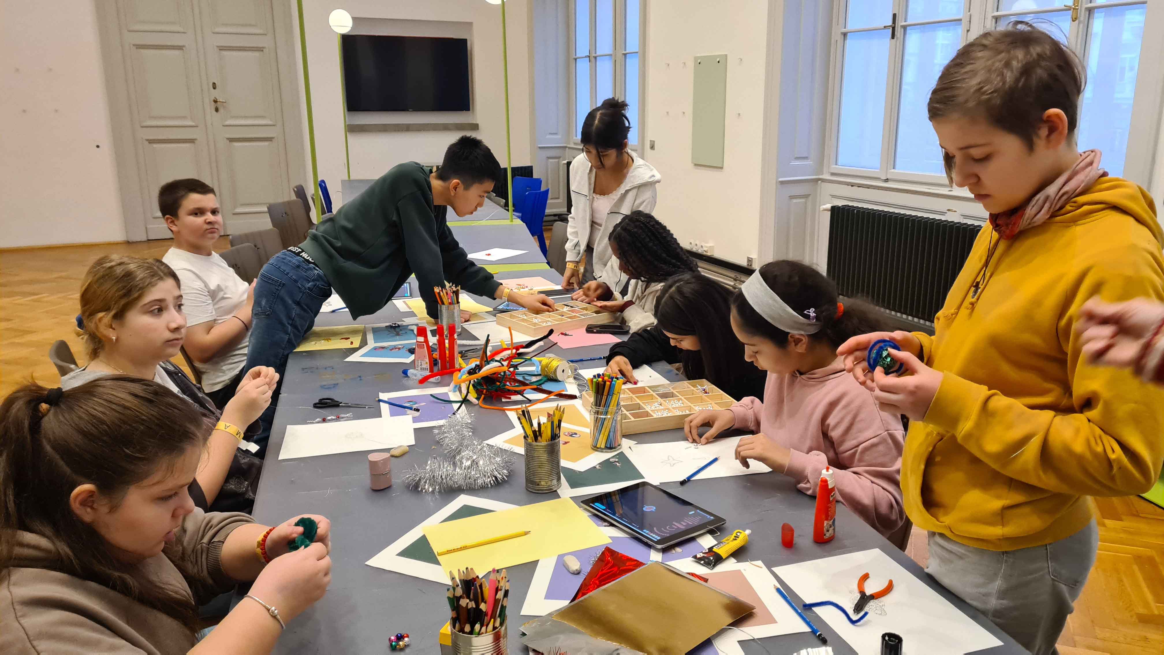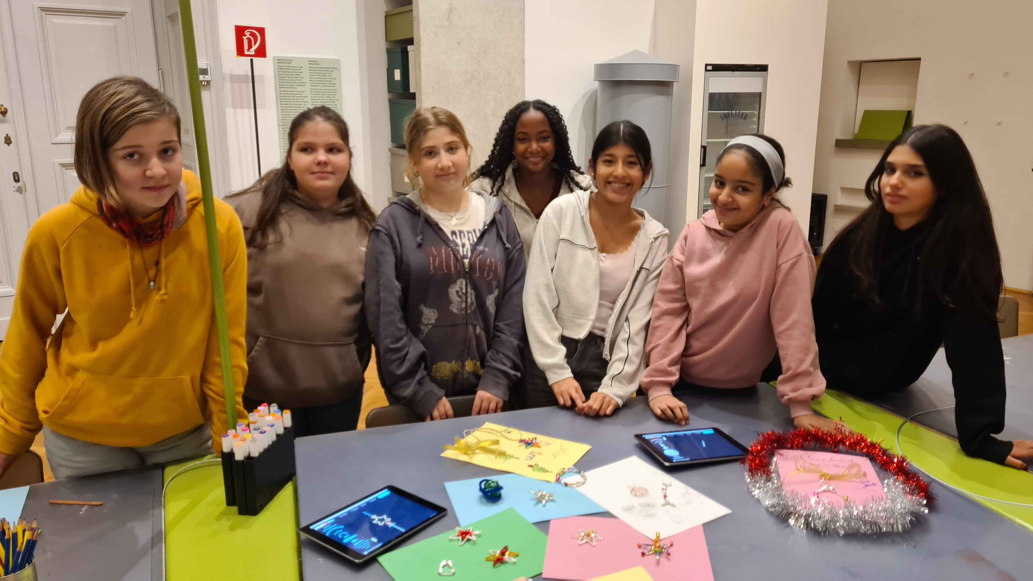 Im Museum für angewandte Kunst (MAK) besuchten die Schülerinnen und Schüler der unverbindlichen Übung ARTelier die Ausstellung „Fahrrad & Hummer“ – Funkelnder Baumschmuck aus Gablonz und kreierten mit den glitzernden Glasperlen begeistert selbst viele schöne Sterne, Ketten und Anhänger.