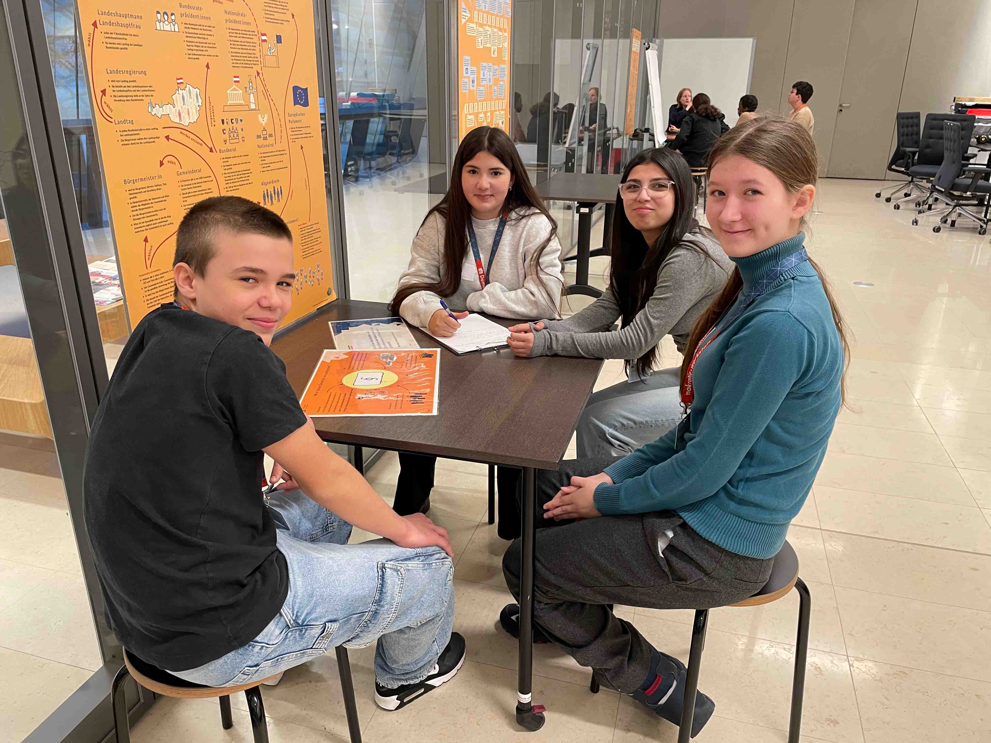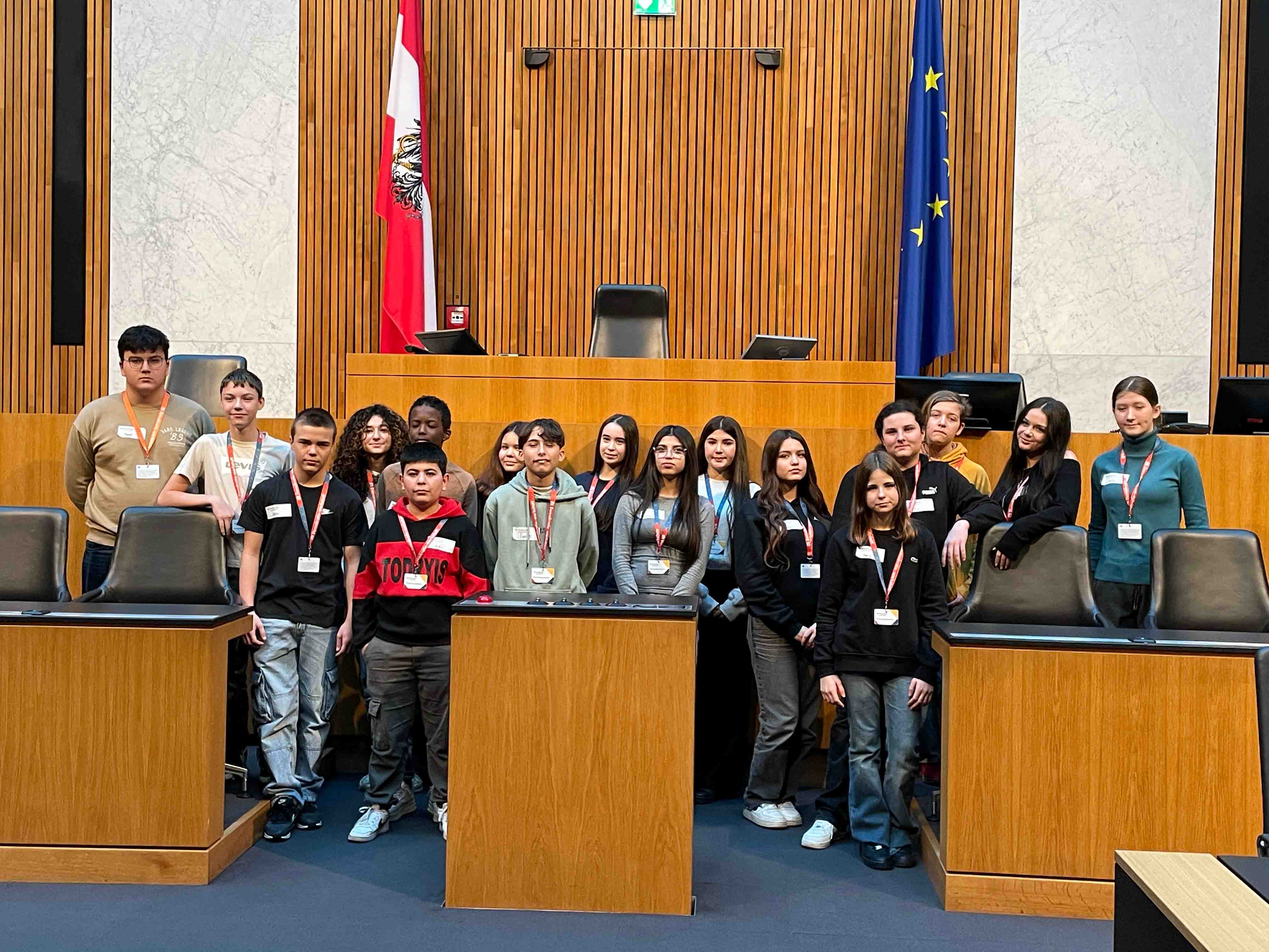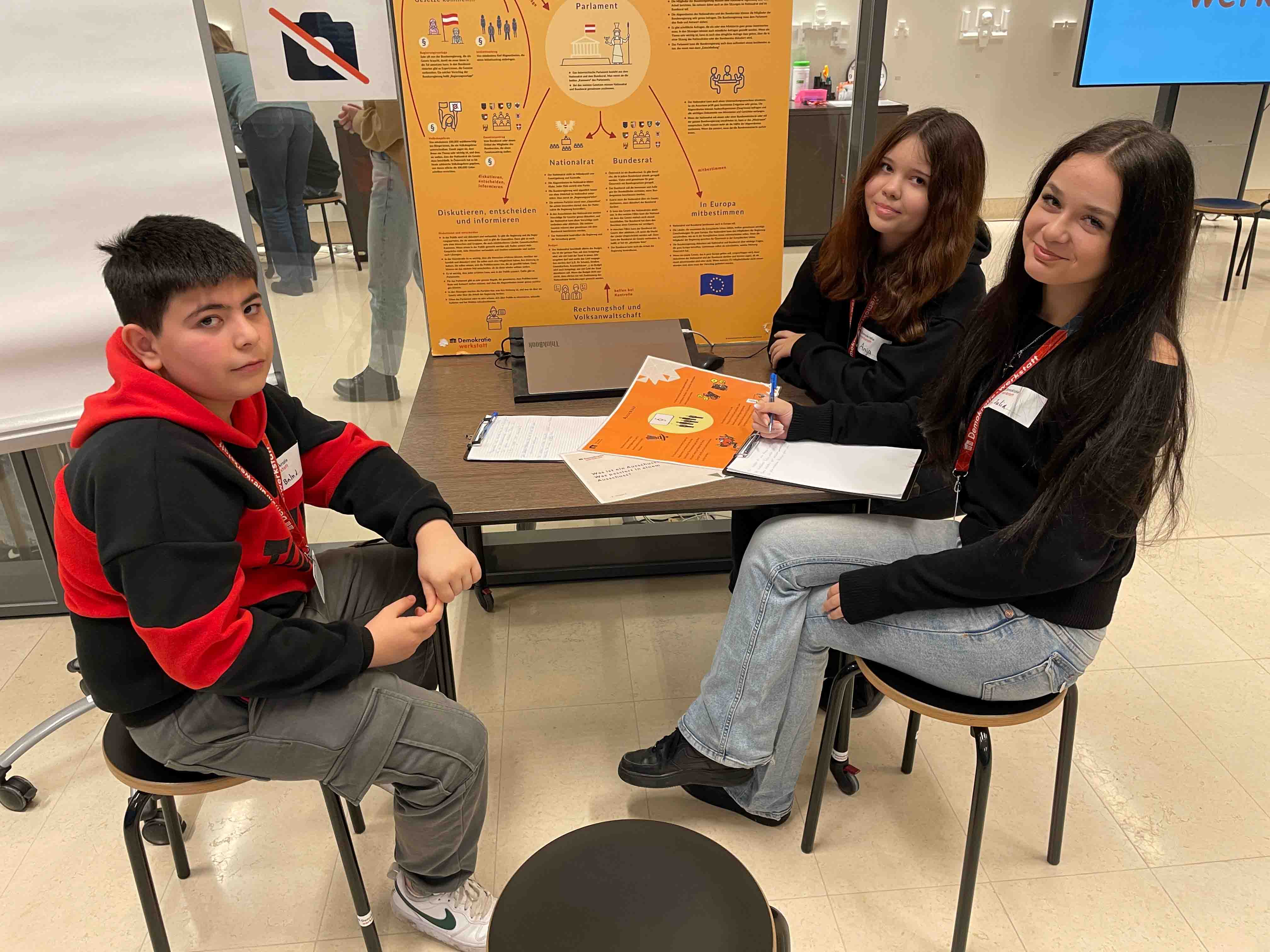 Die Schüler:innen der 3B machten einen Rundgang durch das Parlament und erarbeiteten, wie ein Gesetz entsteht. Dazu gestalteten sie einen sehr interessanten Podcast. Dieser kann auf www.demokratiewebstatt.at unter „Beiträge aus der Werkstatt“ und dem Datum 22.12.2025 aufgerufen werden. Viel Spaß beim Nachhören!